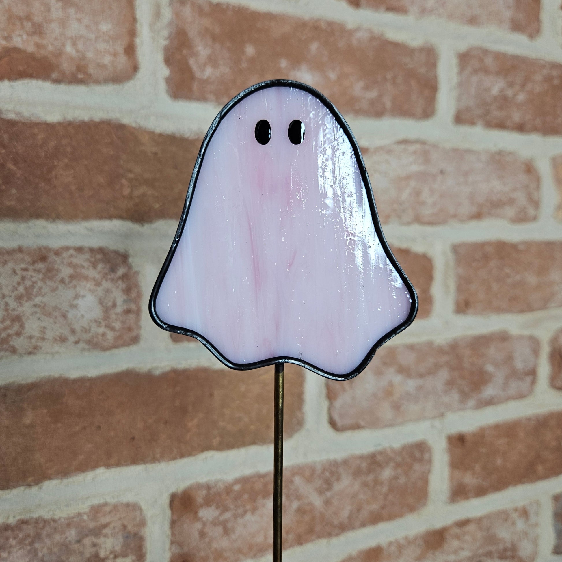 Attached to a brass rod ready to pop into a plant pot! Please display indoors and avoid getting the ghost wet.